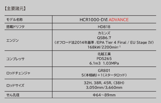 今後、上位サイズ機種『HCR1200-DY』、『HCR1200-EDY』にもセミオート機能「ドリリング・オペレーションサポートシステム」を搭載したADVANCEシリーズをラインナップする予定です。