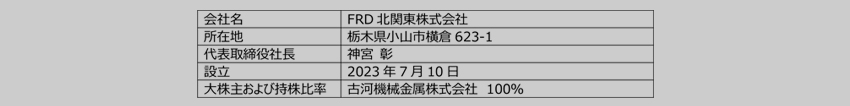 古河ロックドリル株式会社は、古河機械金属株式会社が2023年7月に設立したFRD北関東株式会社(栃木県小山市、社長:神宮 彰)において、北関東地区でのブラストホールドリルの整備サービス事業の伸長とメカニック人材の育成を強化するため、10月1日より整備サービス事業を開始しました。