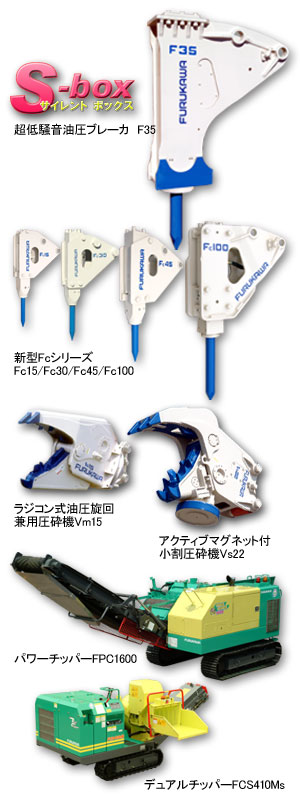 超低騒音型油圧ブレーカ、ラジコン式油圧旋回、デュアルチッパーFCS410Mなどを出品。 |