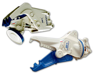 切れ味の鋭いカッター刃と強力な切断力で重量鋼材を切断。一体型くさび形状のセンターツースでコンクリート塊をラクラク破砕する多機能型鉄骨カッターです。 |