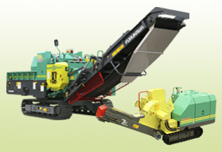 剪定枝木、竹などを粉砕する小型チッパーとして、業界初のコンベアによる排出方式を採用した自走式全油圧式チッパーです。そして、