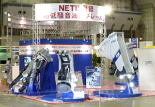 国土交通省の新技術情報システム【NETIS】の登録製品である「超低騒音油圧ブレーカSS-boxシリーズ」の8機種を展示するとともに、今回新技術として登録となりました「トンネル発破工法の自動追尾式余掘り低減システム」と古河産機システムズ鰍フ「トンネル工事用の電気式集塵器イーダスコ」を紹介いたしました。そして、解体現場で活躍している20トンクラスの大割圧砕機Vx225とマグネット付小割圧砕機Vs22-Mを展示いたしました。