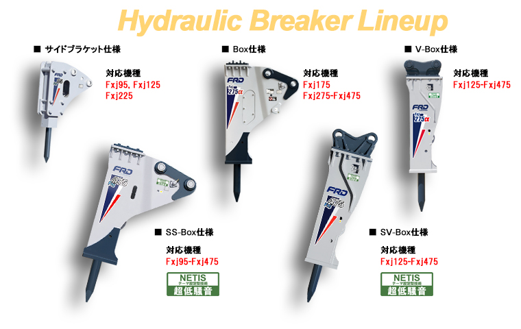 中・大型油圧ブレーカに求められる性能・耐久性・整備性・取り回し性および低騒音のすべてを高い次元で結実させた、お客様の安心と信頼を総合的に追求したシリーズです。