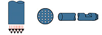 通常のロッドより先端の摩滅が少ないため、摩耗性の高い対象物の破砕に使用されます。