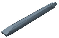 先端が平らなため、打撃中にロッドが滑って位置がずれることが少なく、対象物を細かく破砕することができます。 |