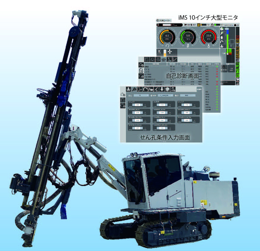 発破孔せん孔作業に用いる油圧クローラドリルの新モデル(中型機)を展示致します。稼働状況がひと目で分かる大型モニタにて、せん孔条件を容易に入力できます。故障箇所の自己診断機能により、メンテナンスも容易になります。せん孔、走行、ブーム操作レバーは、軽快で直感的な操作性を実現し、新しい制御システムにより、作業性の効率化と、燃費性能を向上させました。